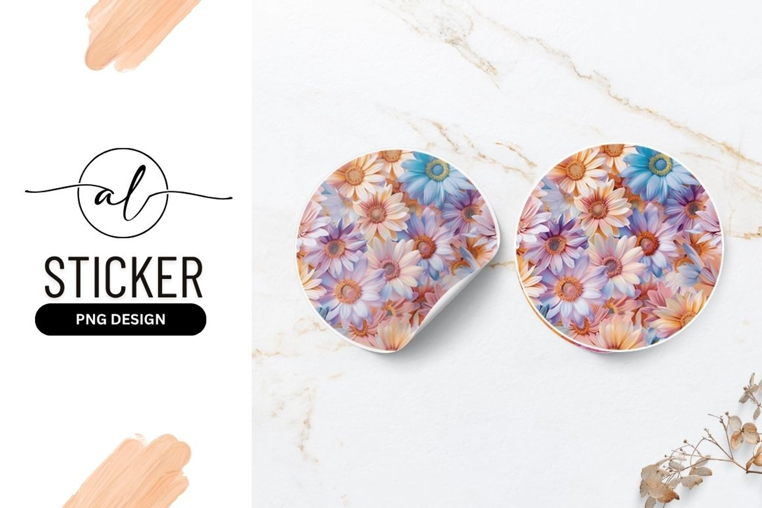 Similar Design Products to Colorful Pastel Daisies Seamless Round Sticker Png