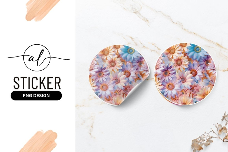 Colorful Pastel Daisies Seamless Round Sticker Png example image 1