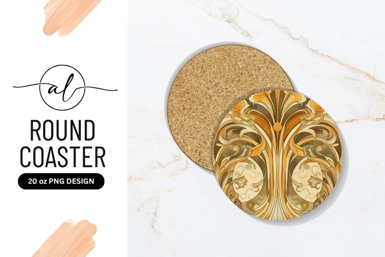 Ornate Art Nouveau Floral Round Coaster example image 1