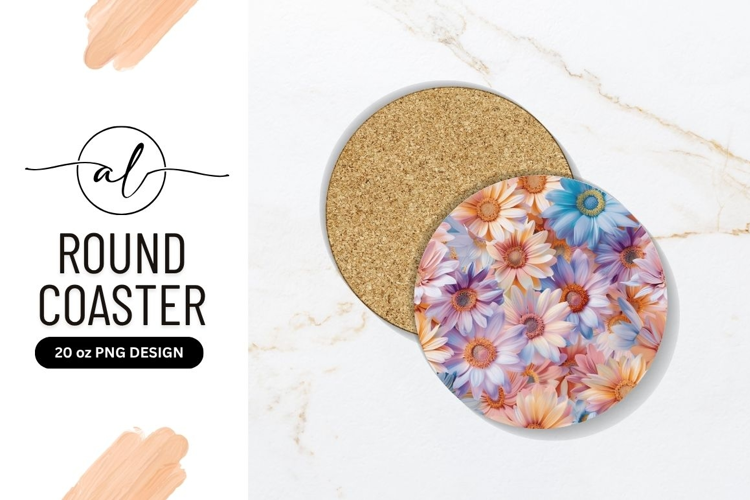 Pastel Colored Daisy Flowers Round Coaster Png example image 1