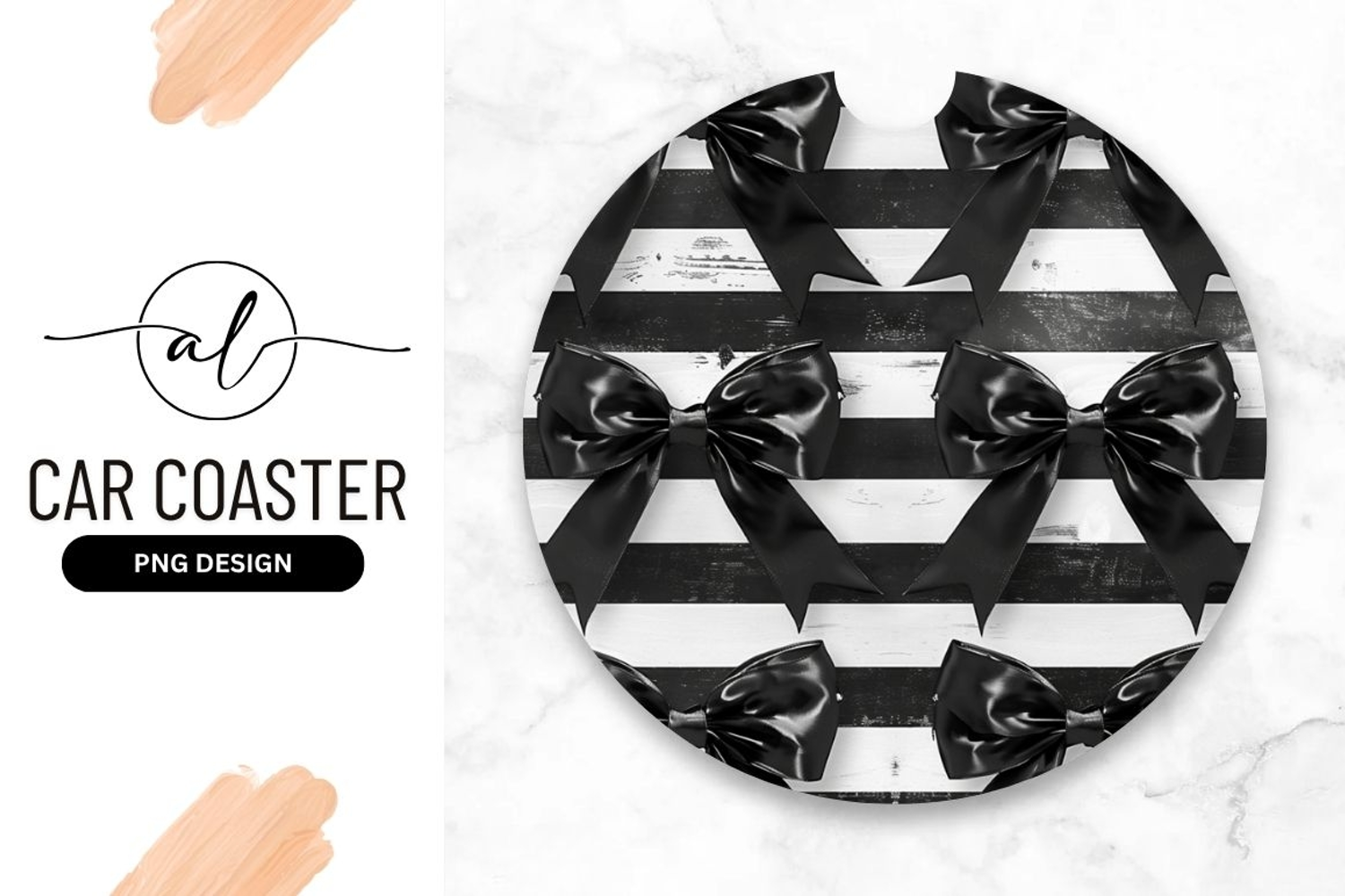 Similar Design Products to Black Bows On Striped Background Round Car Coaster