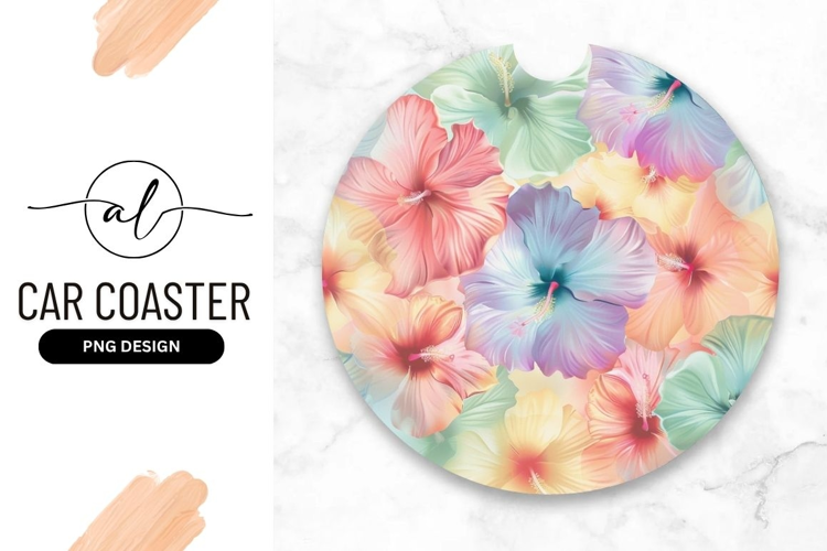 Similar Design Products to Pastel Hibiscus Flowers Round Car Coaster Png