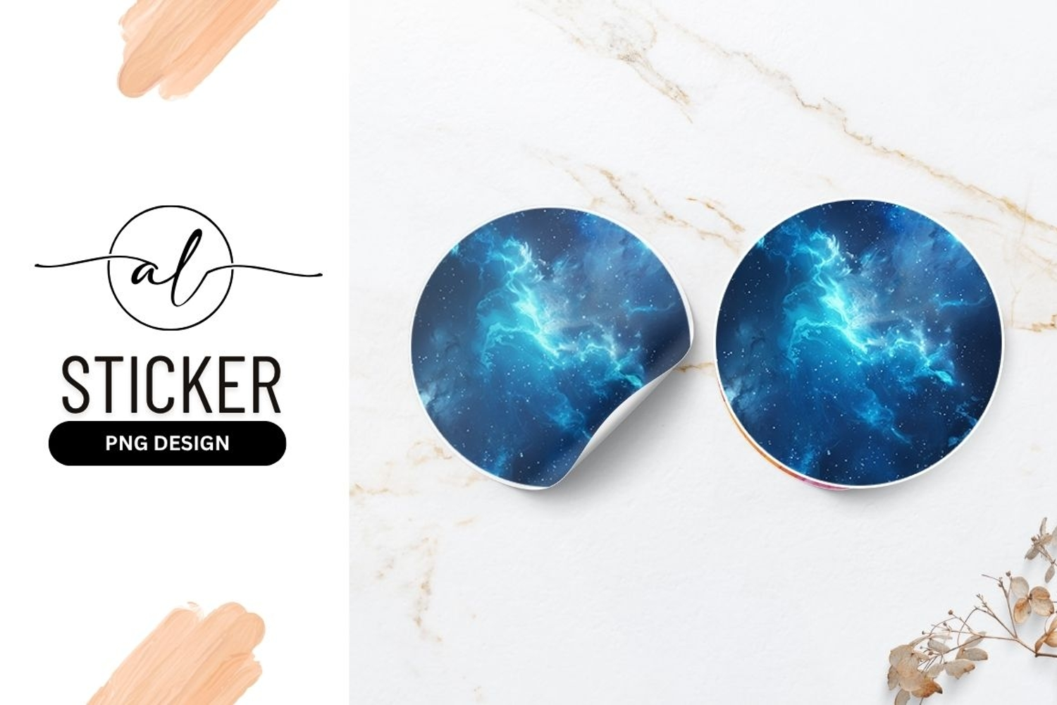 Blue Nebula Galaxy Round Sticker P N G on White Background example image 1