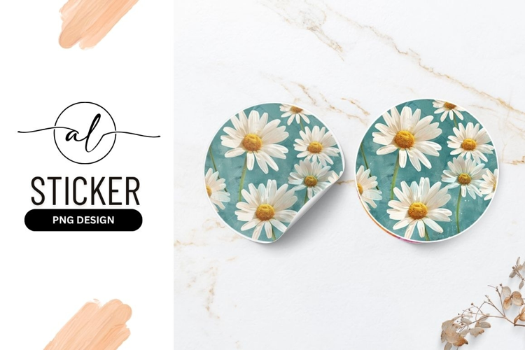 Daisy Flowers on Teal Background Round Sticker P N G example image 1