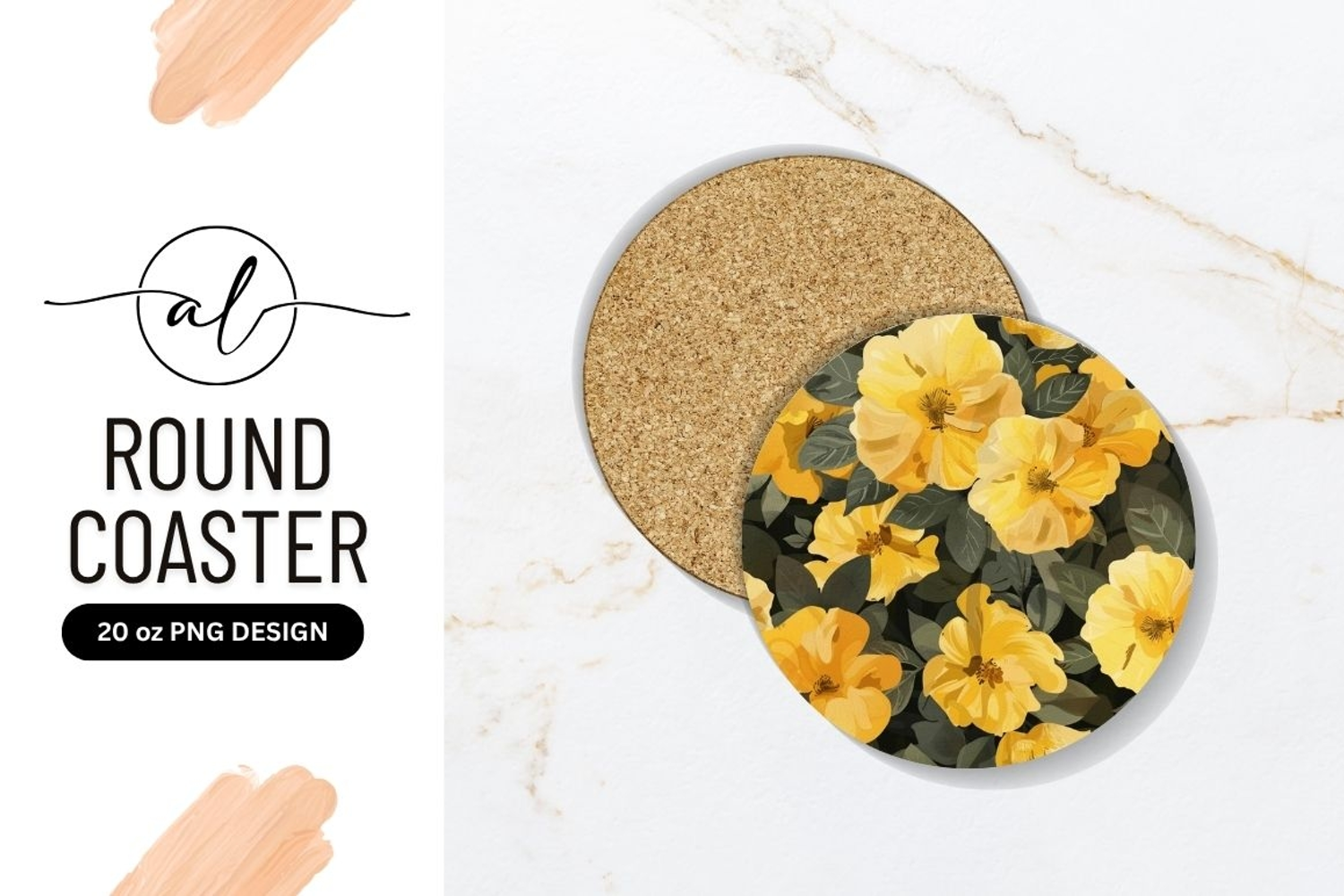 Similar Design Products to Yellow Floral Pattern Round Coaster Png