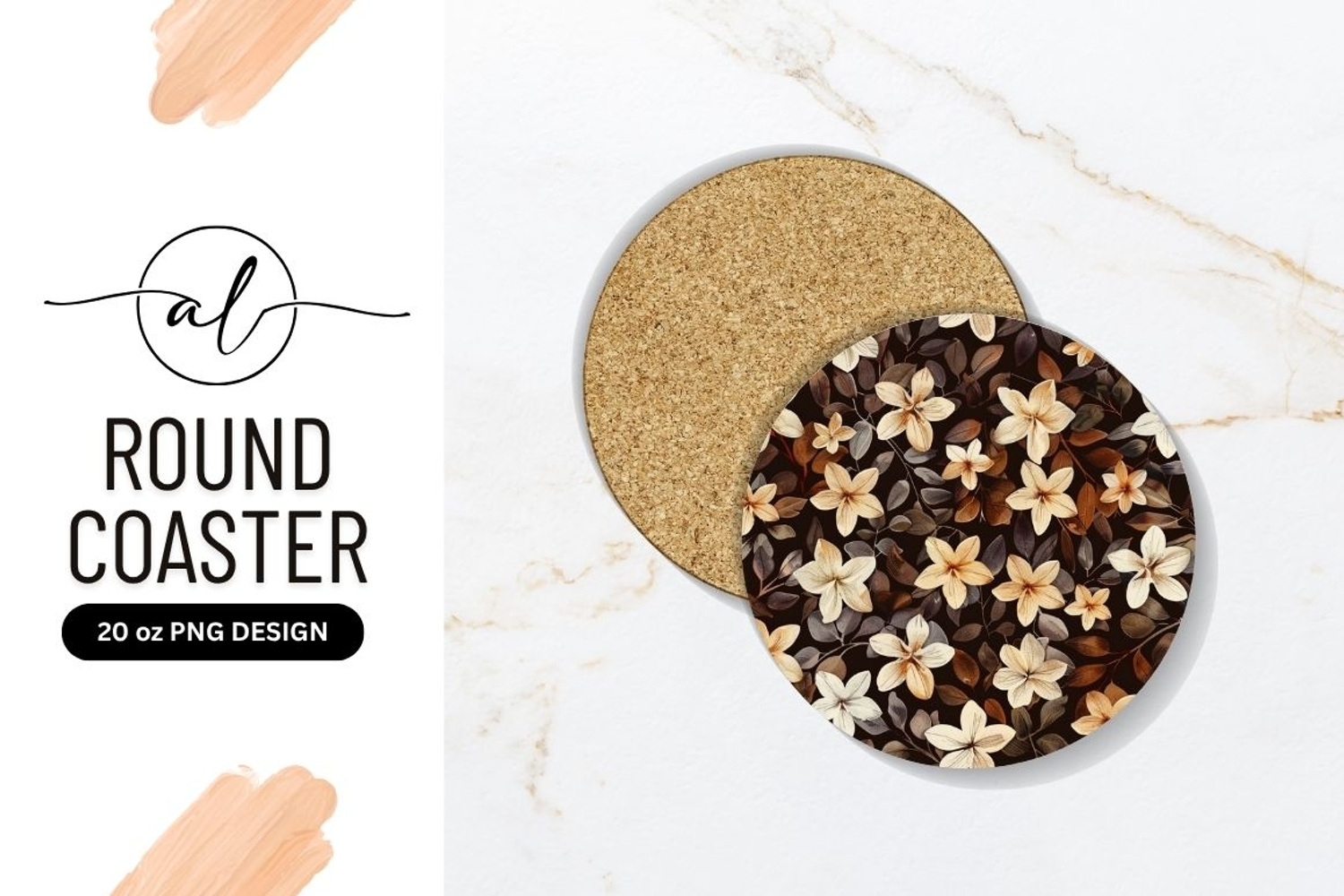 Floral Watercolor Pattern Round Coaster Background example image 1