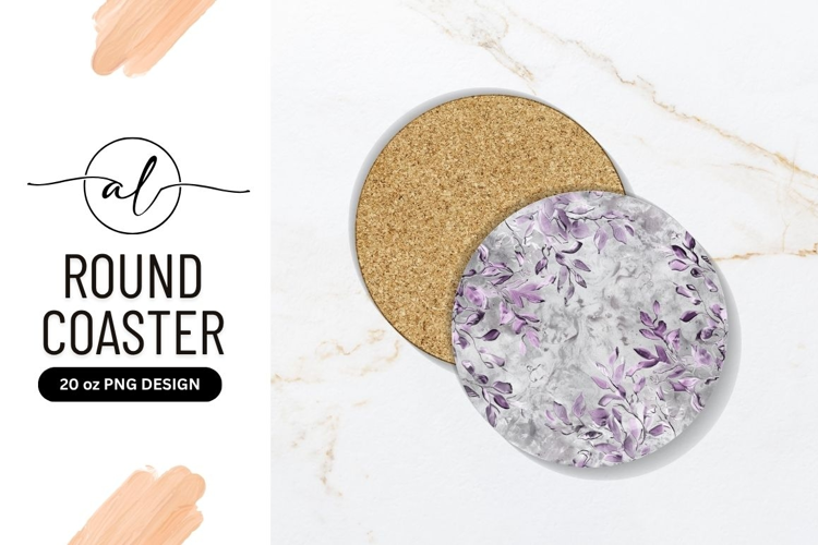 Elegant Purple Leaves On Gray Round Coaster example image 1
