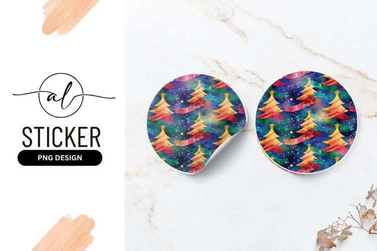 Colorful Christmas Tree Pattern on Round Sticker P N G example image 1
