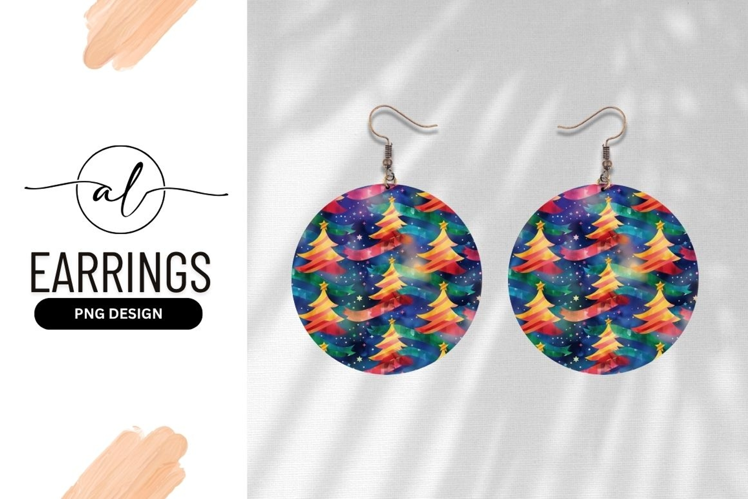 Colorful Christmas Tree Seamless Pattern Round Earring Png example image 1