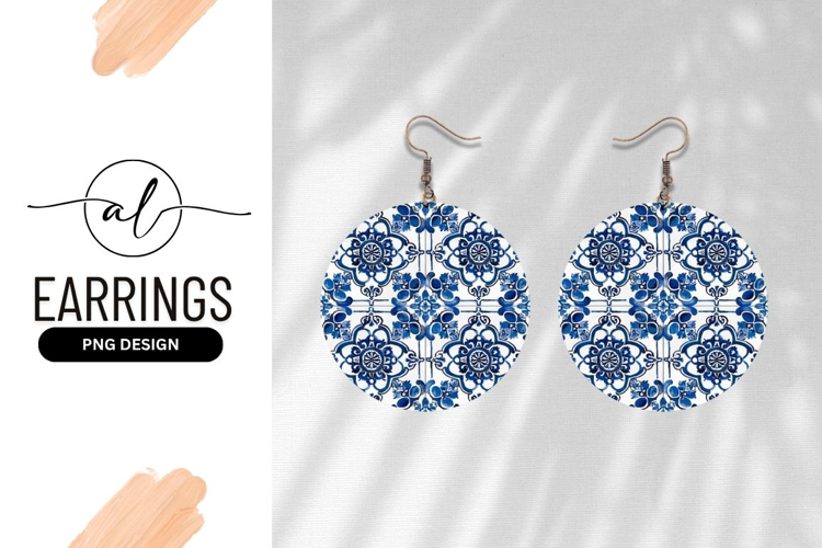 Blue And White Tile Design Round Earring Png example image 1
