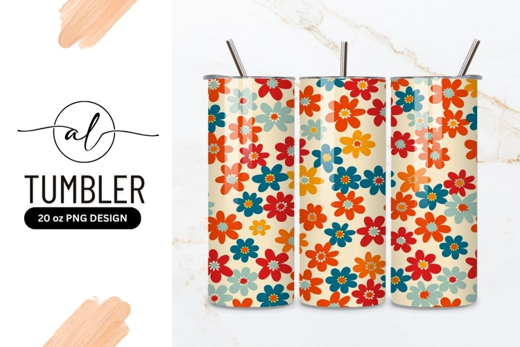 Retro Floral Pattern with Red Orange Blue and Yellow Flowers example image 1