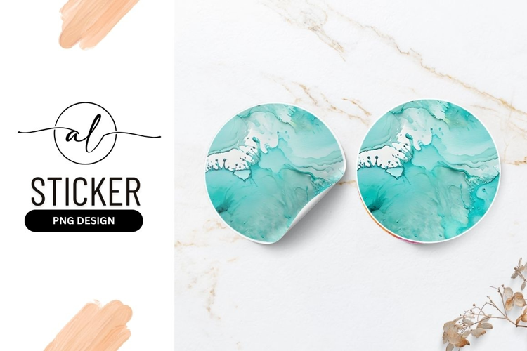 Teal Abstract Ink Wash Round Sticker Png example image 1
