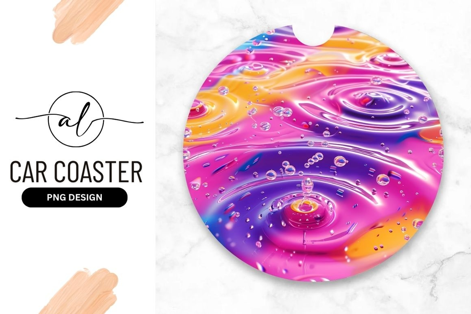 Round Car Coaster Sublimation Design | PNG | 300 DPI