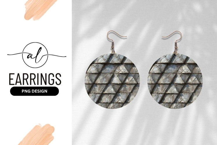 Gray Stone Diamond Texture Round Earring Png example image 1