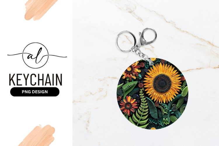 Paper Sunflower and Floral Composition in a Round Keychain example image 1