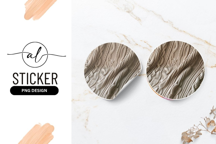 Beige Knitted Fabric Texture Round Sticker Png example image 1