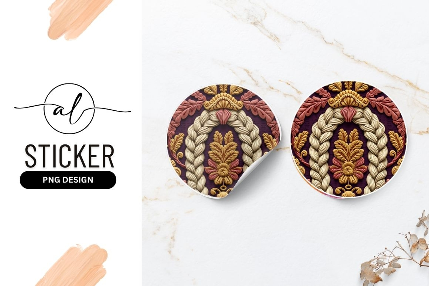 Similar Design Products to Ornate Braided Ornament Round Sticker Png Element