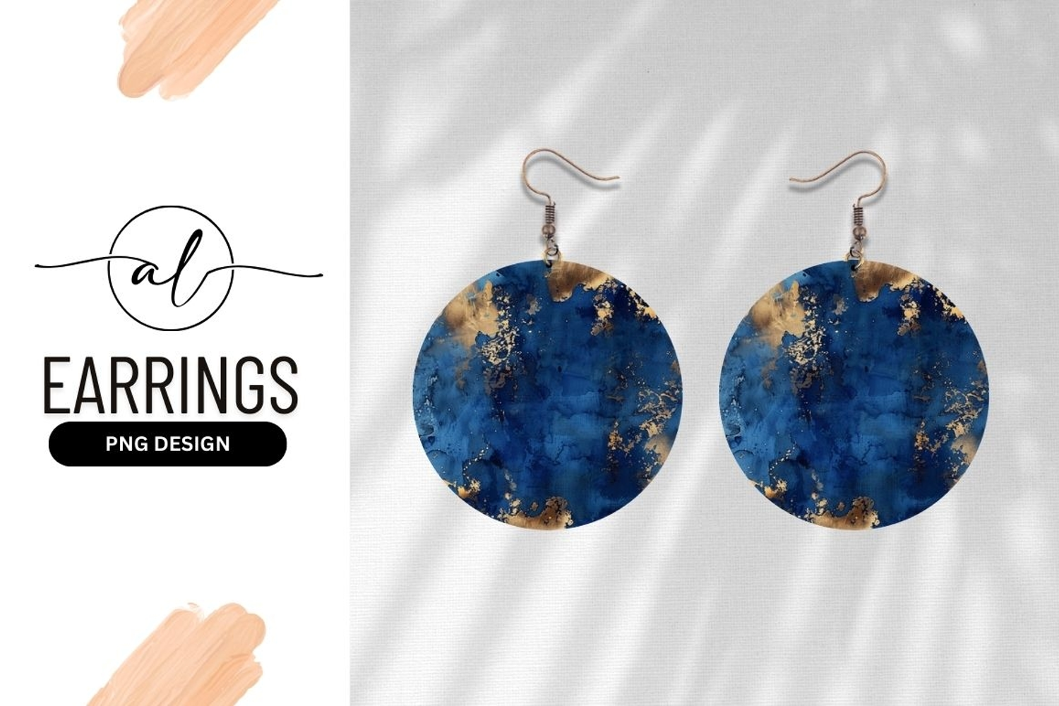 Abstract Pattern Jewelry Design Fashion Accessory Round Earring Design Luxury Earring Deep Blue Hues Artistic Earring Gold Flecks Blue And Gold Round Earring Design Png Blue And Gold Earring