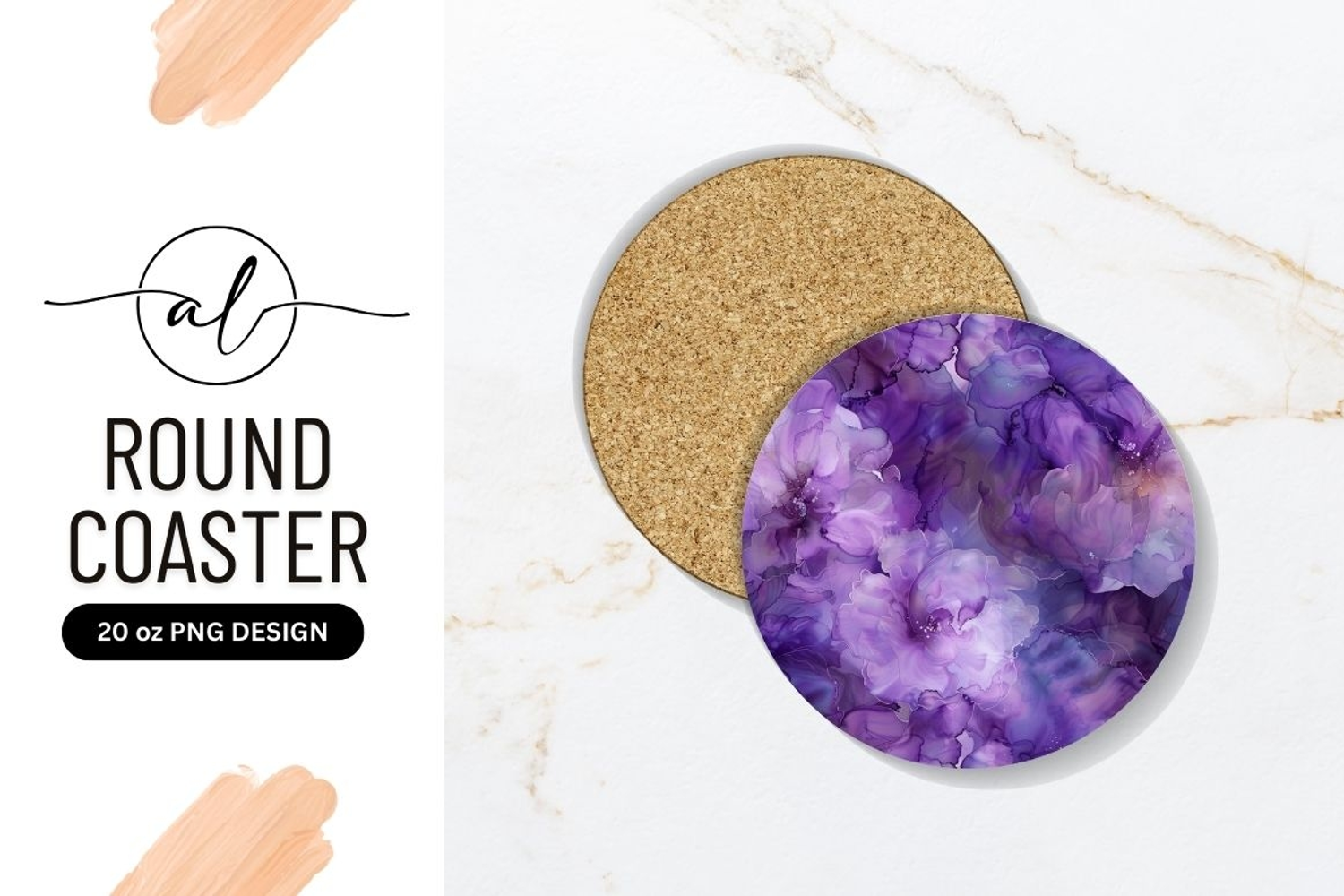 Floral Flower Pattern Purple Coaster Home Decor Table Decor Png Design Round Coaster Purple Floral Round Coaster Png Design