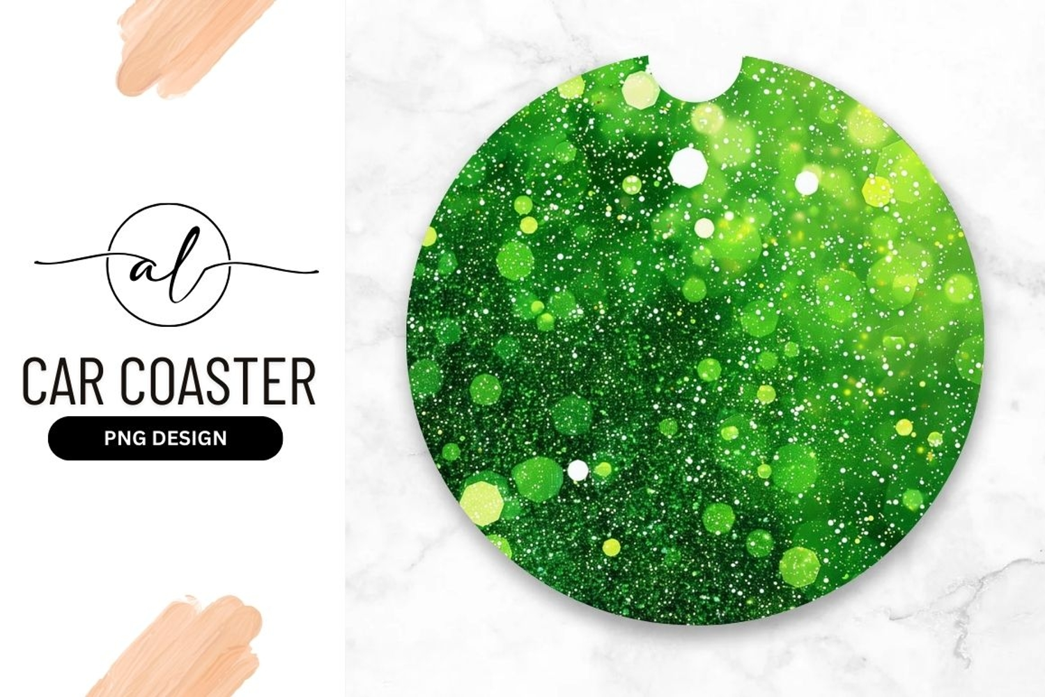 Green Glitter Png Design Sparkle Design Car Coaster Car Protection Round Coaster Car Accessory Green Sparkle Auto Decor Green Sparkle Round Car Coaster Png Design