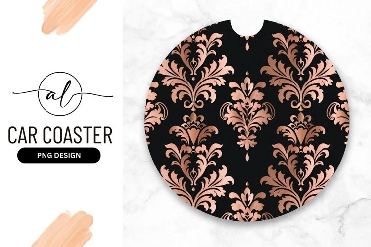 Damask Pattern Black And Gold Elegant Design Car Coaster Round Coaster Vehicle Interior Elegant Round Car Coaster Png Design Protect Surface Scratch Prevention Spill Prevention
