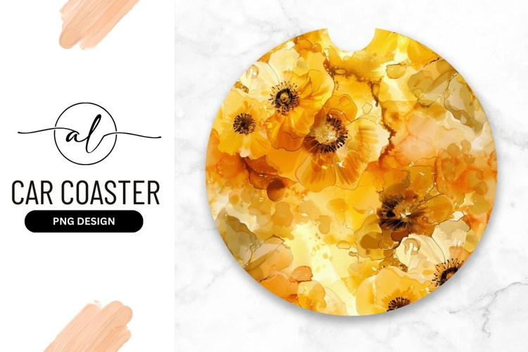 Transparent Background Flower Pattern Kitchen Decor Home Decor Car Coaster Round Coaster Yellow Floral Design Decorative Coaster Vehicle Accessory Round Car Coaster With Yellow Floral Design