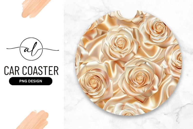 Decorative Elegant Customizable Rose Pattern Home Decor Golden Roses Png Design Car Coaster Round Coaster Elegant Rose Pattern Car Coaster Png Design