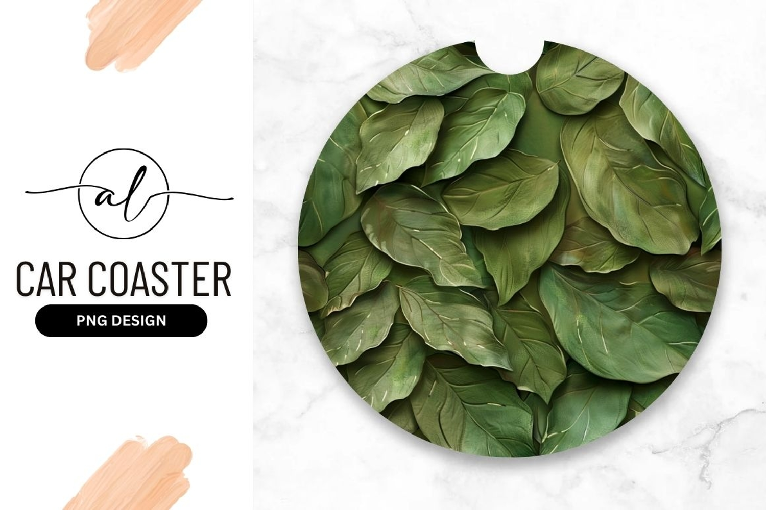 Green Leaves Eco-friendly Nature Design Png Design Car Coaster Round Coaster Car Accessory Decorative Coaster Protect Car Surface Round Car Coaster With Green Leaves Design