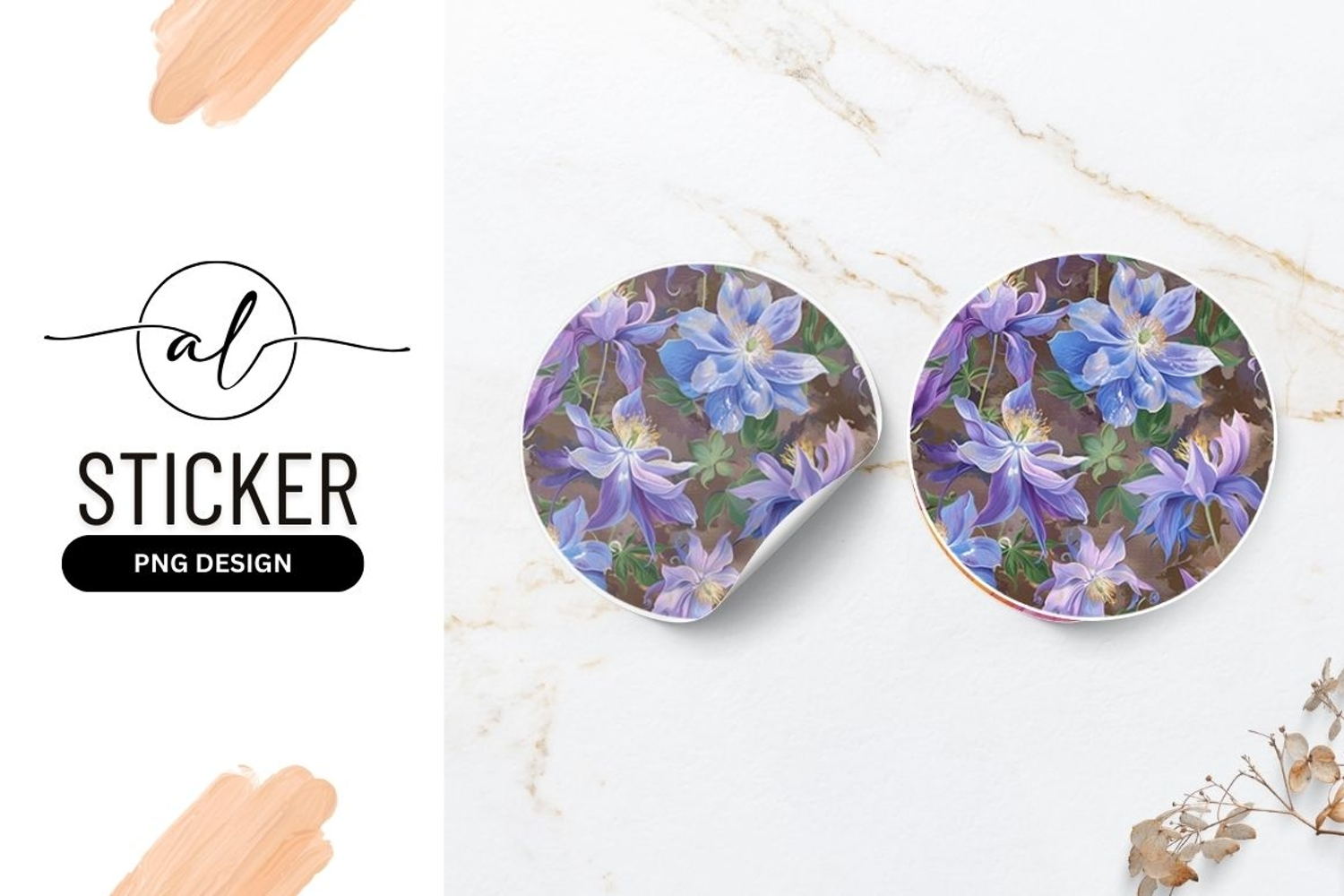 Sticker Nature Flowers Decoration Round Sticker Png Design Laptop Sticker Water Bottle Sticker Blue Clematis Blue Clematis Flower Round Sticker Png Design