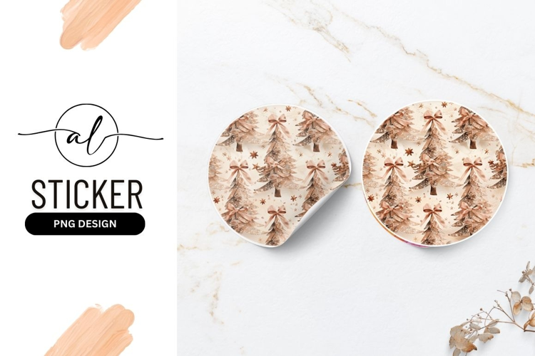 Round Sticker Design Snow Christmas Forest Bow Png Trees Christmas Forest Round Sticker Png Design