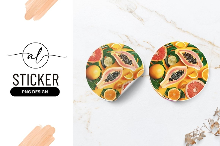 Vibrant tropical fruits round sticker png design example image 1