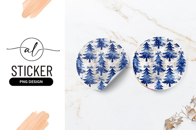 Sticker Decoration Blue Snowflakes Round Sticker Winter Forest Png Design Snow-covered Trees Blue Winter Forest Round Sticker Png Design Winter Charm