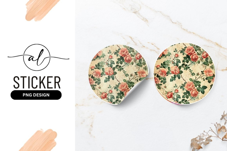 Vintage rose pattern round sticker png example image 1