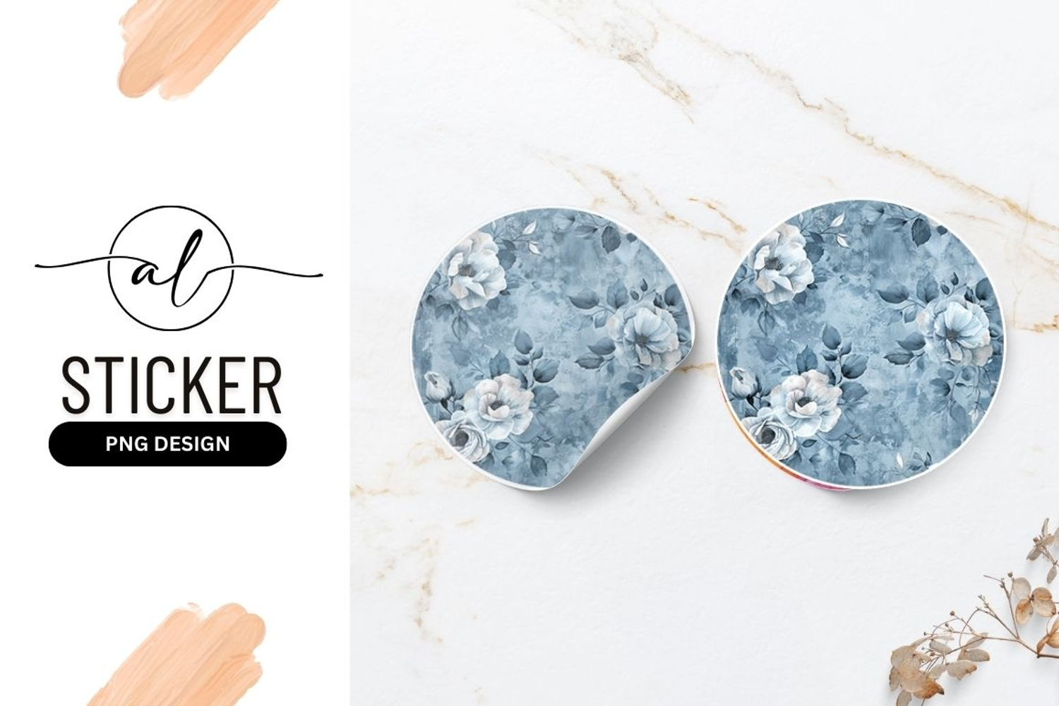 Sticker Flowers Leaves Round Sticker Blue Floral Png Design Laptop Sticker Journal Sticker Decorative Sticker Blue Floral Round Sticker Png Design