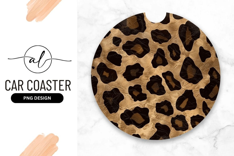 Golden leopard print car coaster png design example image 1