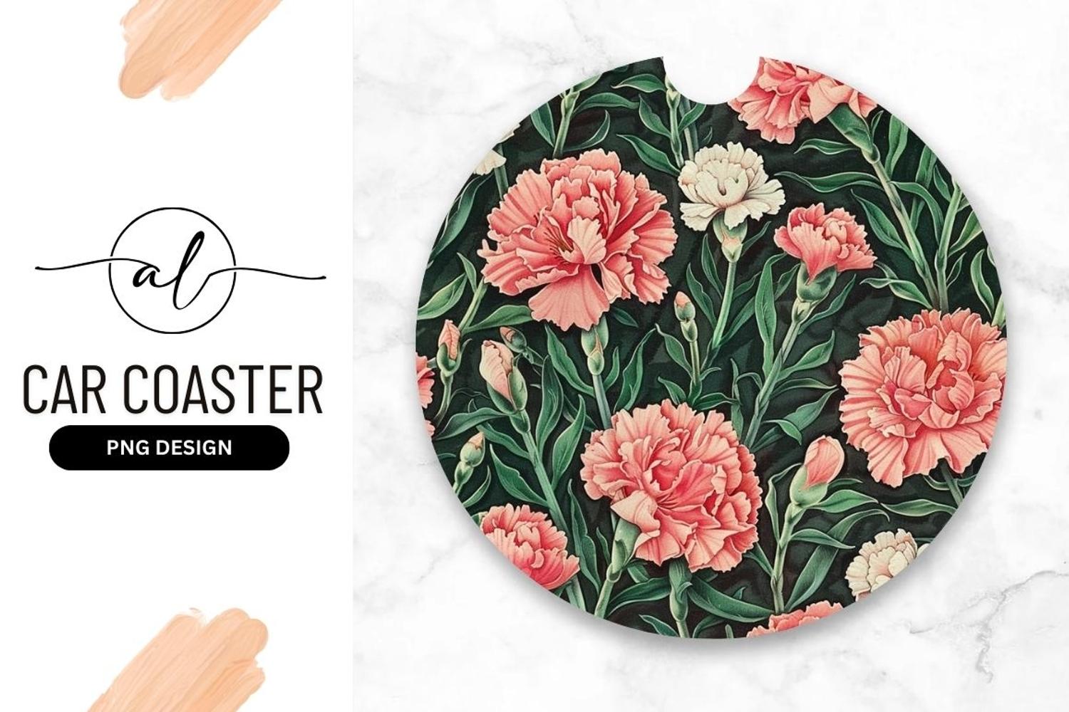 Round car coaster with floral design example image 1