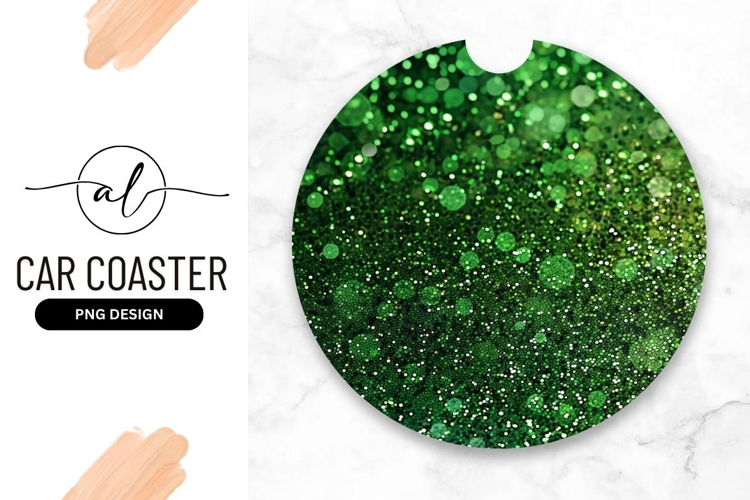 Glitter Pattern Green Glitter Png Format Sparkle Design Car Coaster Round Coaster Vehicle Interior Customizable Coaster Auto Accessory Green Glitter Round Car Coaster Png Design