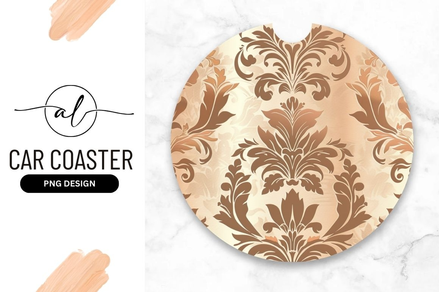 Elegant Interior Design Floral Design Damask Pattern Home Decor Png Design Car Coaster Round Coaster Vehicle Accessory Elegant Round Car Coaster Png Design