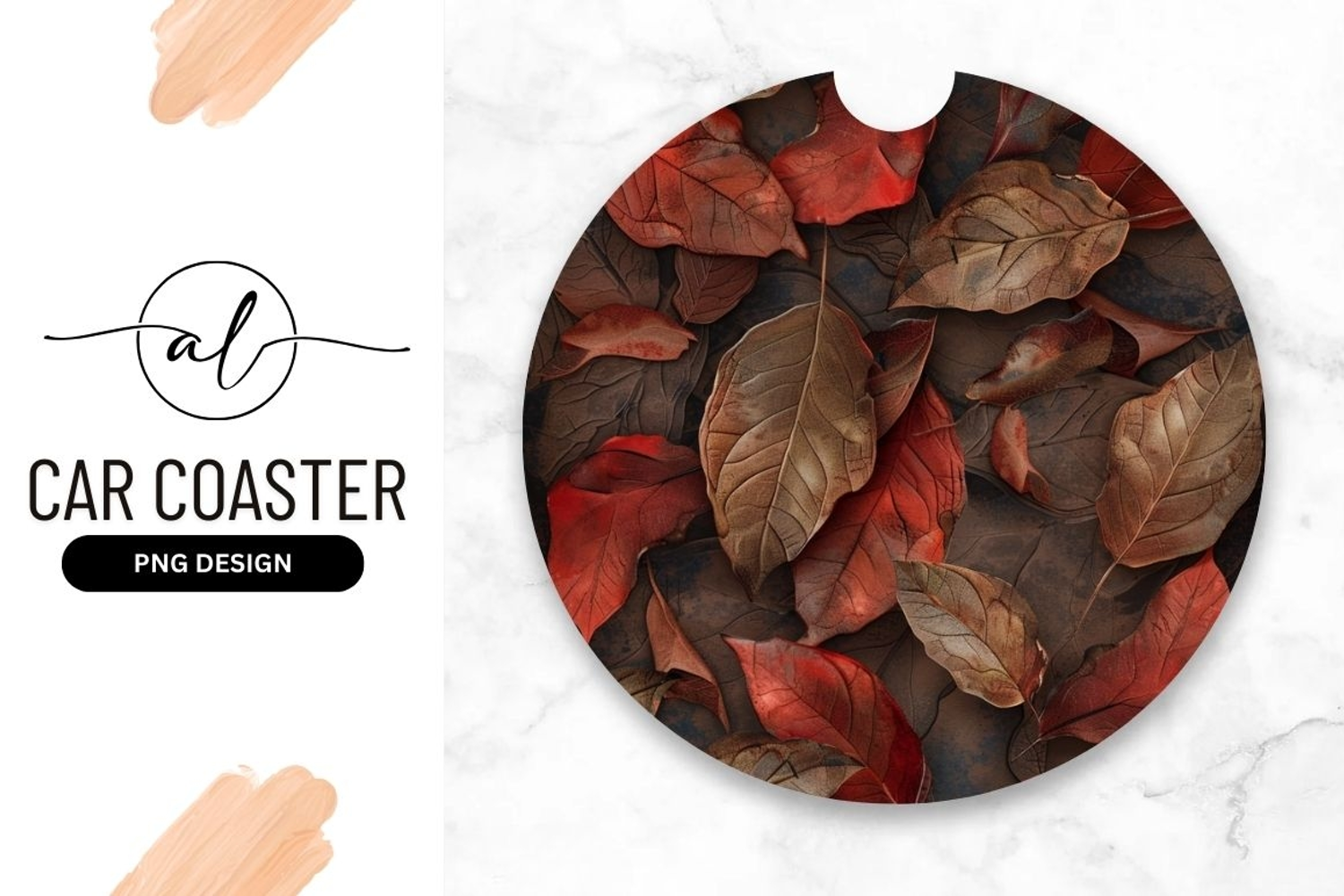 Round car coaster with autumn leaves design example image 1