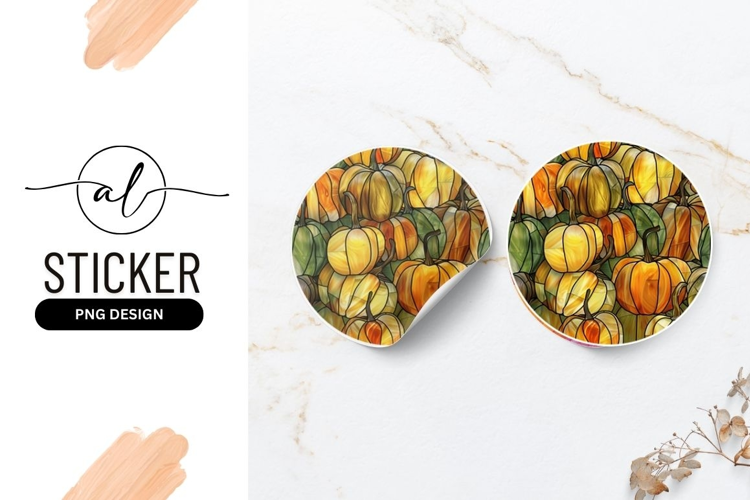 Autumn harvest pumpkin round sticker png design example image 1