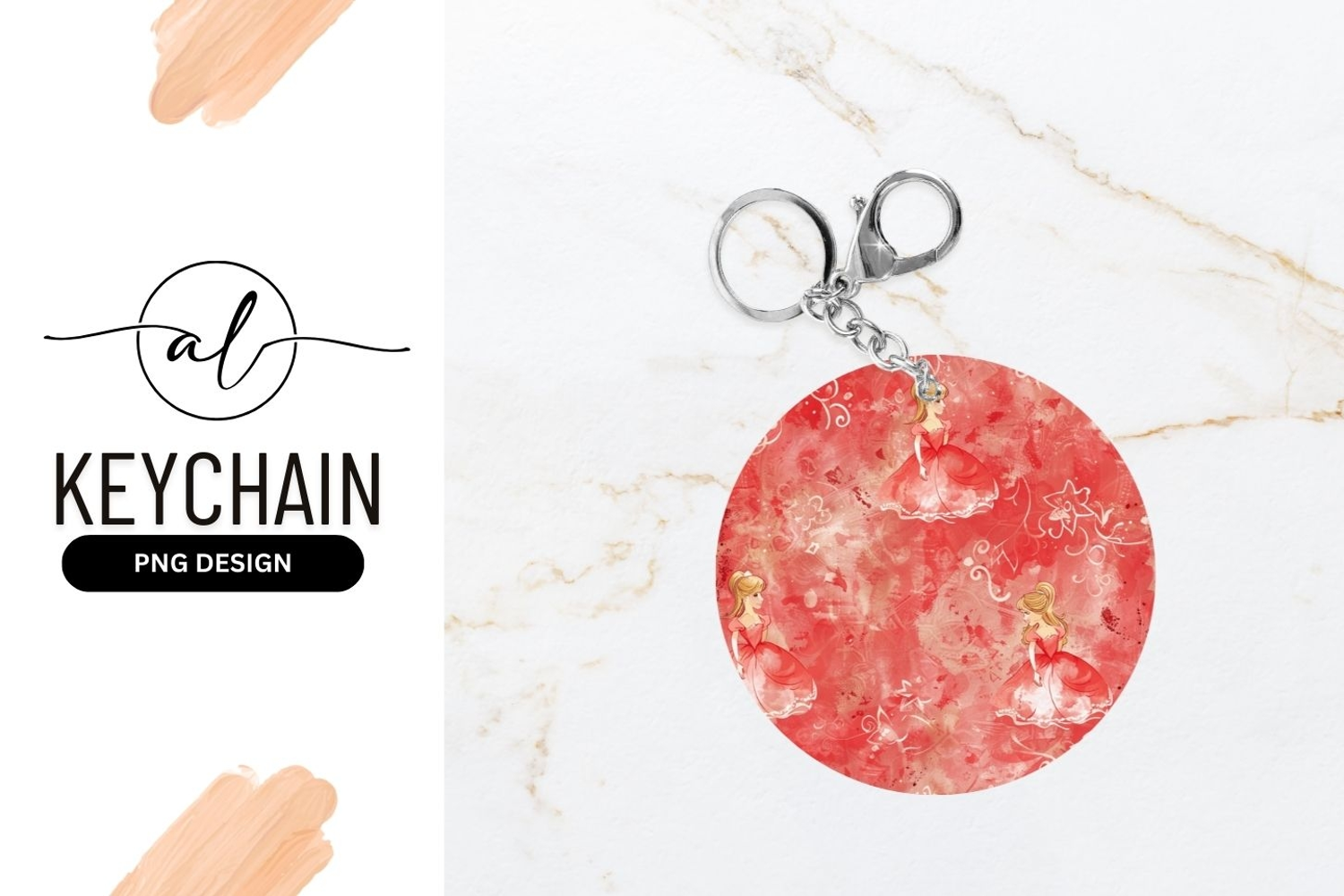 Watercolor Round Design Png Red Princess Blonde Fairy Tale Keychain Princess Round Keychain Png Design