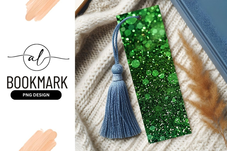 Green glitter bookmark png design example image 1