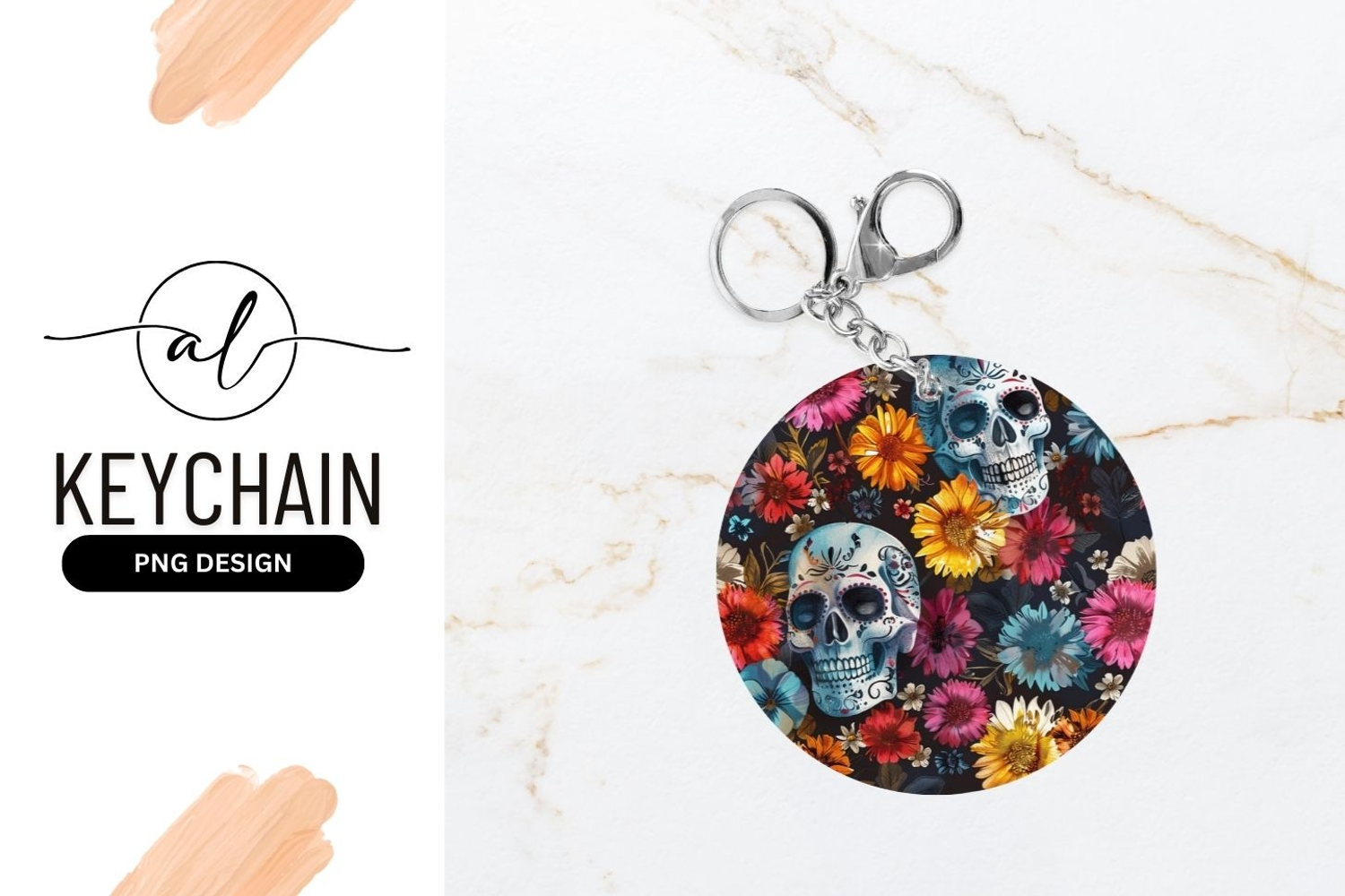 Similar Design Products to Vibrant sugar skull and floral round keychain png design