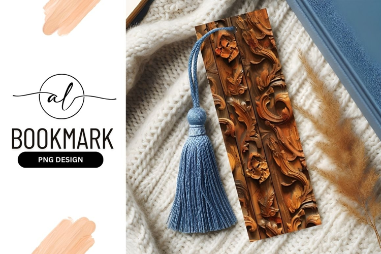 Intricate wooden bookmark png design example image 1