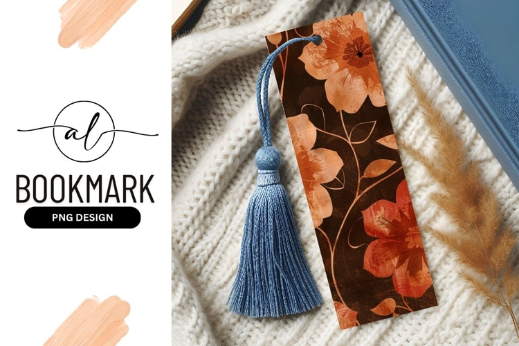Vintage Design Floral Flowers Leaves Png Bookmark Textured Background Earthy Tones Vintage Floral Bookmark Png Design