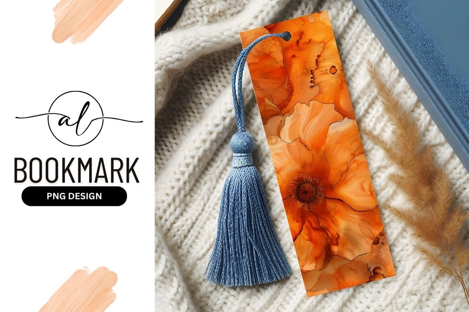 Decorative Watercolor Floral Artistic Reading Orange Flowers Bookmark Bookmark Design Png Design Vibrant Orange Floral Bookmark Png Design