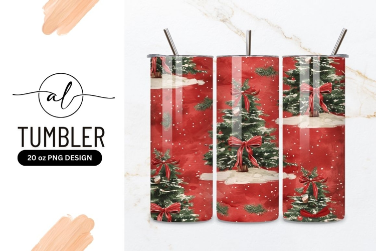 Holiday Christmas Png Christmas Tree Snowflakes Seasonal Pine Branches Red Background Tumbler Design Christmas Tree Tumbler Png Design