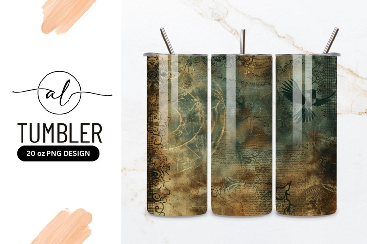 Vintage Antique Design Bird Steampunk Compass Parchment Tumbler Scrollwork Vintage Steampunk Tumbler Png Design