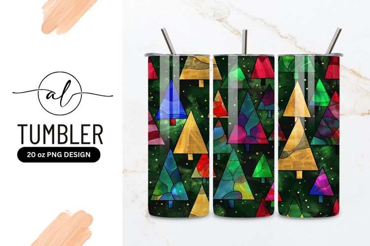 Stained glass christmas tree tumbler design example image 1