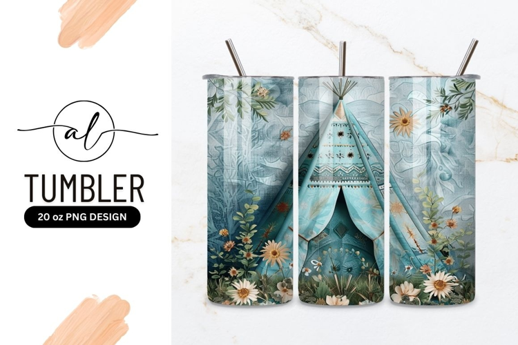 Nature Floral Outdoor Greenery Tumbler Png Design Nature Lover Intricate Patterns Blue Tepee Nature Tumbler Png Design Blue Tepee